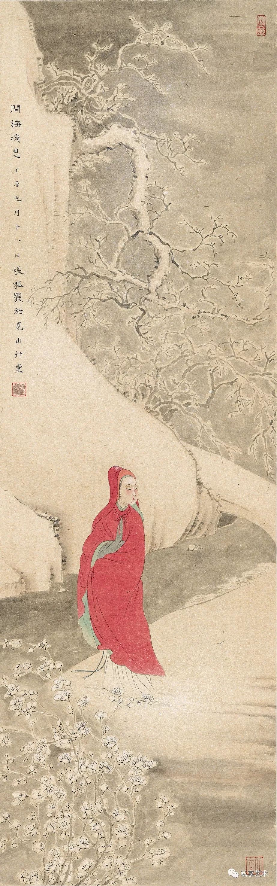 《问梅消息》25x75cm 纸本设色 2017