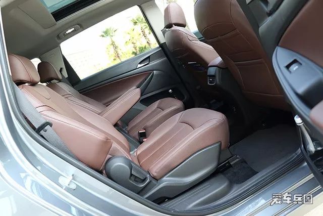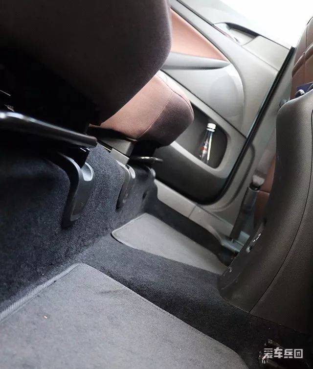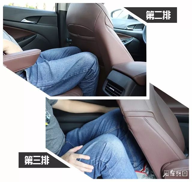 从上面两张图可以看出,在第二排预留出足够的乘坐空间后(1拳位置),第三排的腿部空间还是比较宽松的,腿部至少有1拳的位置,舒适感还是比较好的。但在这里,有两个问题是比较明显的。