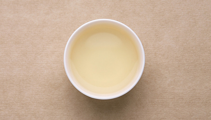 汤色淡如白水,明亮度高,白毫丰富;茶汤甜柔,较润,微鲜,口留清甜;入口汤中有淡淡生豆浆味。