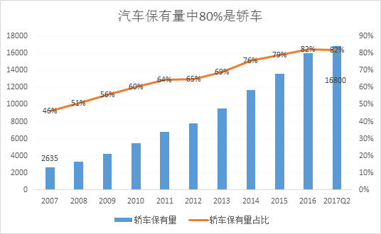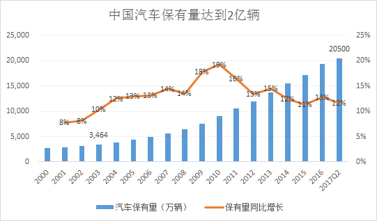 从2003 年开始,我国民用汽车保有量进入较快增长阶段,2010 年开始保有量每年保持两位数以上增长,截止到2017Q2汽车保有量达到2.05亿辆,其中汽车保有量中中小型民用汽车占比82%。按照平均年限10-15 年的报废年限,预计2018~2020 年左右,我国汽车报废高峰将逐步来临。