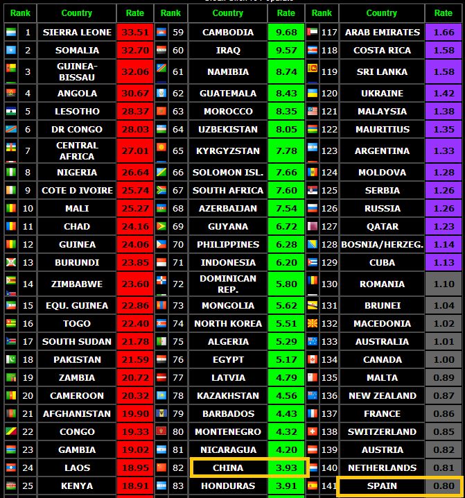 从世界新生儿出生创伤率排名来看,西班牙的数据显然更低。
