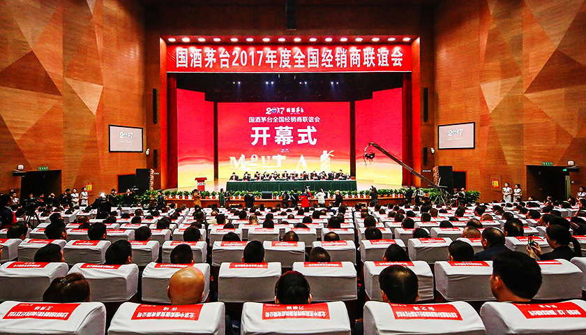 上午9点,经销商大会正式召开,茅台集团公司董事长袁仁国发表讲话。近一个小时的讲话过程中,其介绍了2017年贵州茅台取得的成绩,并多次提及,2017年因市场火爆情况下出现的茅台多地断货情况。