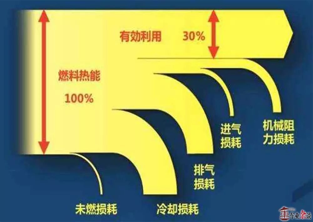 众所周知,燃料燃烧所释放的能量,并不能完全为我们所用,它会被废气、冷却水带走,会在摩擦和泵气中消耗,最后用于做功的只有很小一部分,而发动机热效率简单来说就是这一小部分能量与燃料所具有能量的比值。
