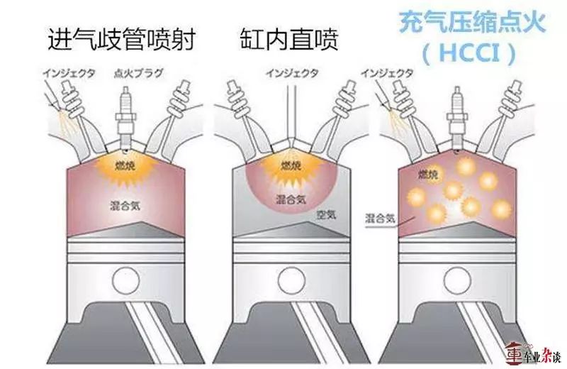 可以说丰田已经榨干了这套系统的潜力,但与50%的目标仍有一段距离。这时候马自达又提出一项技术——HCCI,均质充量压缩点燃,通俗来讲就是均匀的可燃混合气在气缸内通过压缩的方式点燃做功。