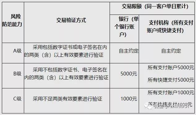 D级:使用静态条码进行支付的,风险防范能力为D级,无论使用何种交易验证方式,同一客户单个银行账户或所有支付账户、快捷支付单日累计交易金额应不超过500元。