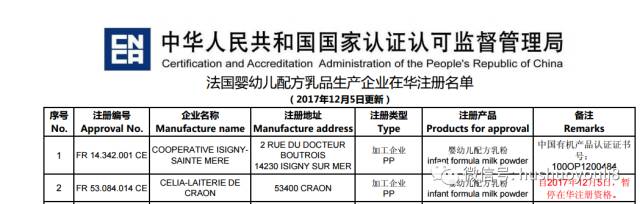 除了此次兰特黎斯的法国工厂被中国认监委暂停注册外,到目前为止,还有3家海外婴幼儿奶粉工厂注册处于暂停状态中。
