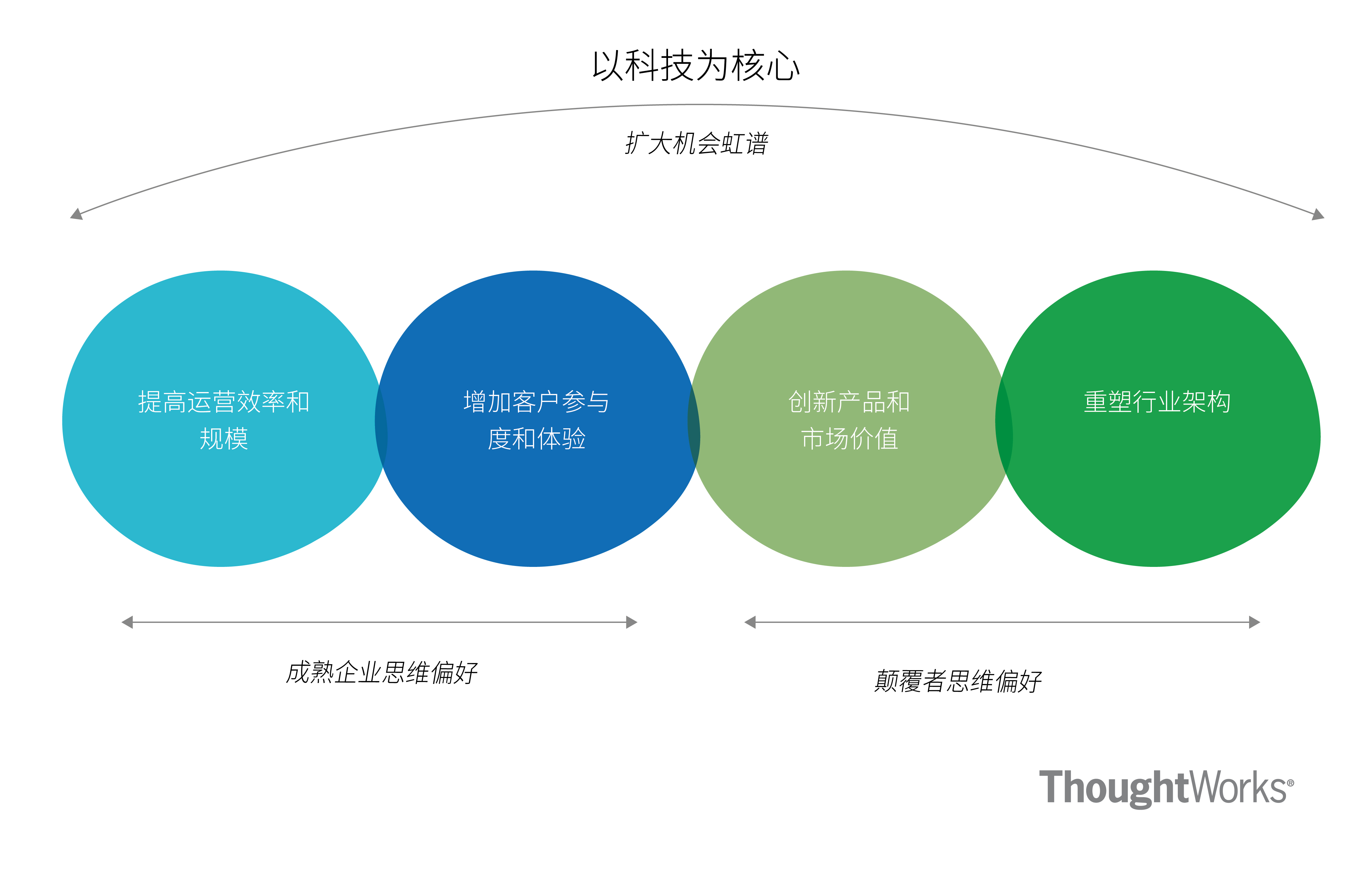 变革最终需要在企业层面做更深层次的颠覆;这需要采用一种全新的思维和工作方式,让科技成为新业务契机的主要推动者。