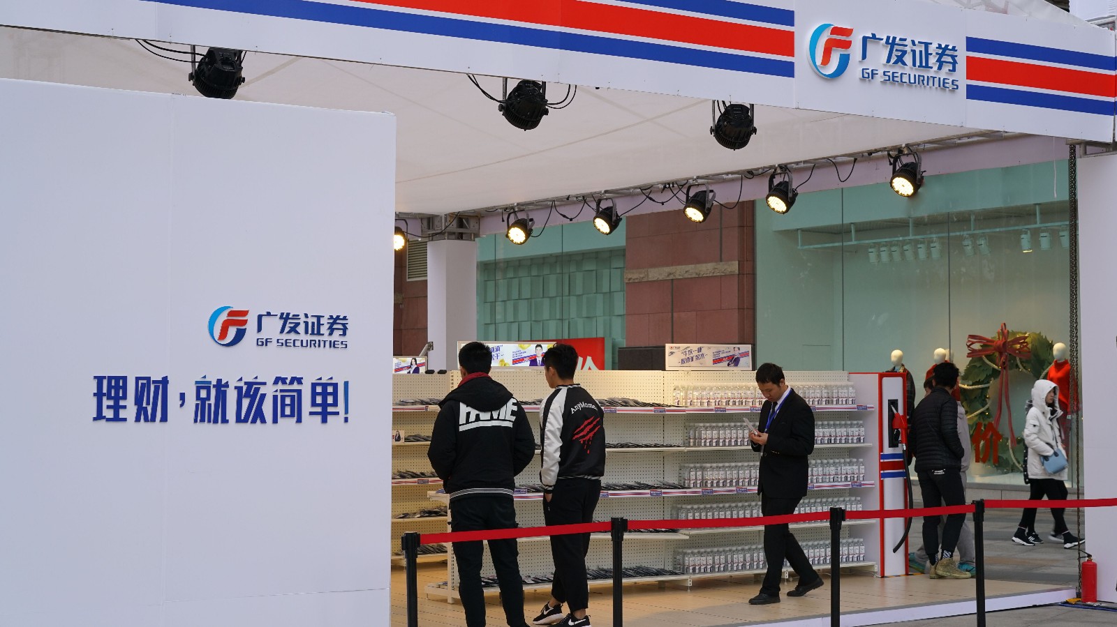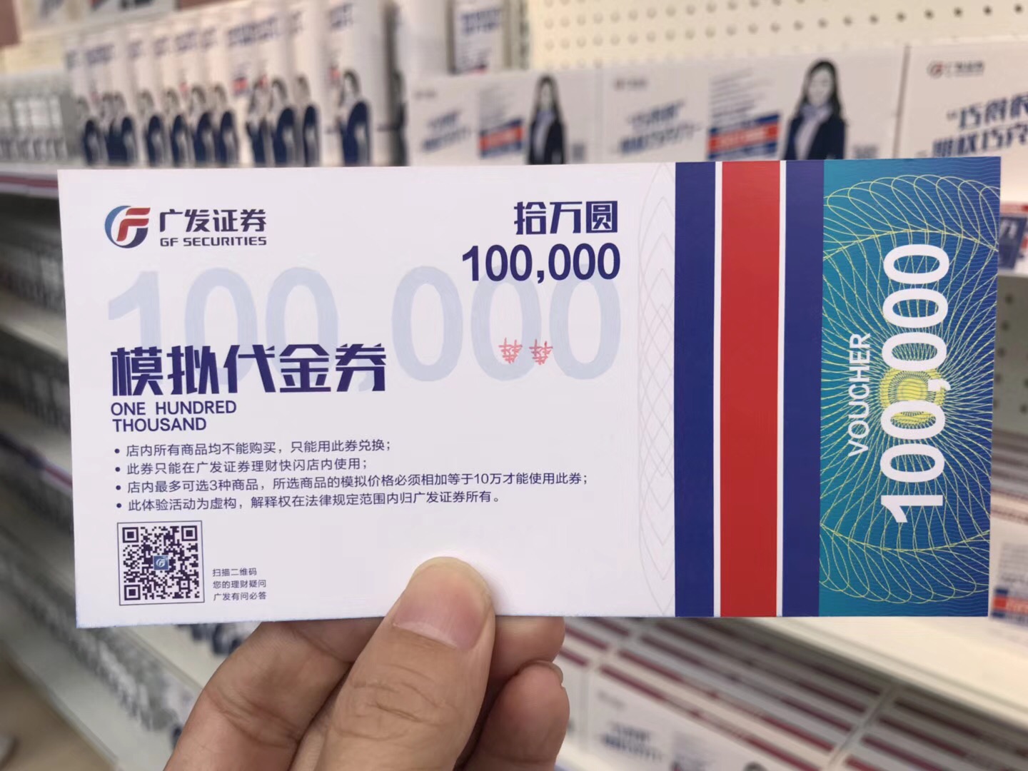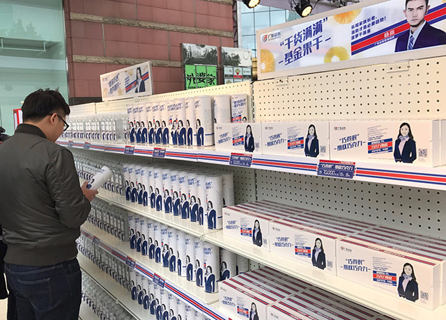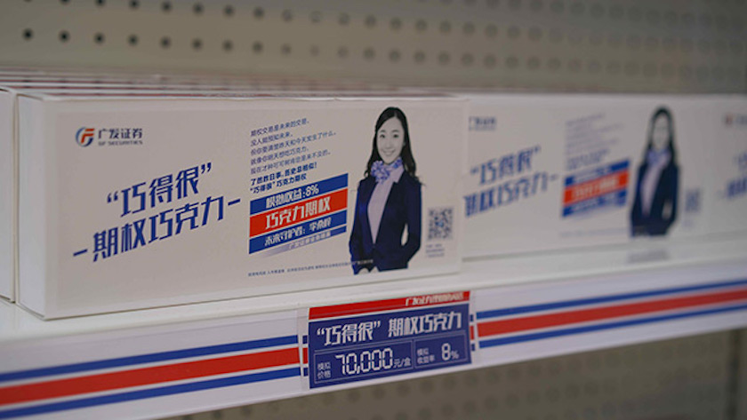 广发证券在广州正佳广场开了一间特殊的快闪店——矿泉水、薯片、巧克力和干果摆满货架,看上去像个便利店。不过价格看上去有点吓人:“牛饮一瓶”股票矿泉水卖1万,“薯你厉害”债券薯片7万一罐,“干货满满”基金果干 8万一袋,“巧得很”期权巧克力7万一盒……好在,每个消费者进门前都会领到一张面额10万元的购物券,购买的商品凑买10万就能免费带走。结账小票上的二维码,扫一扫就可以得到更详细的产品介绍信息。
