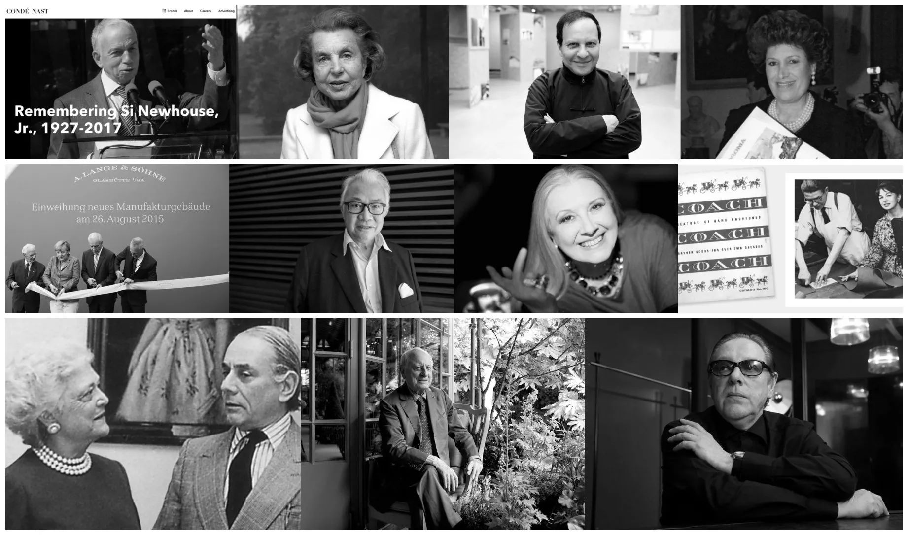 10月,康泰纳仕集团黄金时代的缔造者、杂志业巨头 S. I. Newhouse Jr. 去世,享年 89岁。Newhouse 家族企业Advance Publications由S. I. Newhouse Jr.的父亲 Sam Newhouse 创办,1959年,前者收购了旗下拥有多本著名期刊的康泰纳仕集团。1975年,S. I. Newhouse Jr.出任康泰纳仕集团董事会主席。