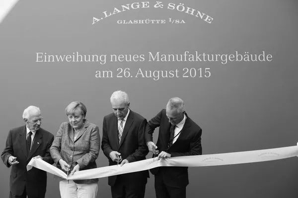 上图:Walter Lange(左一)与德国总理默克尔等人为 A. Lange &S hne 新厂房剪彩