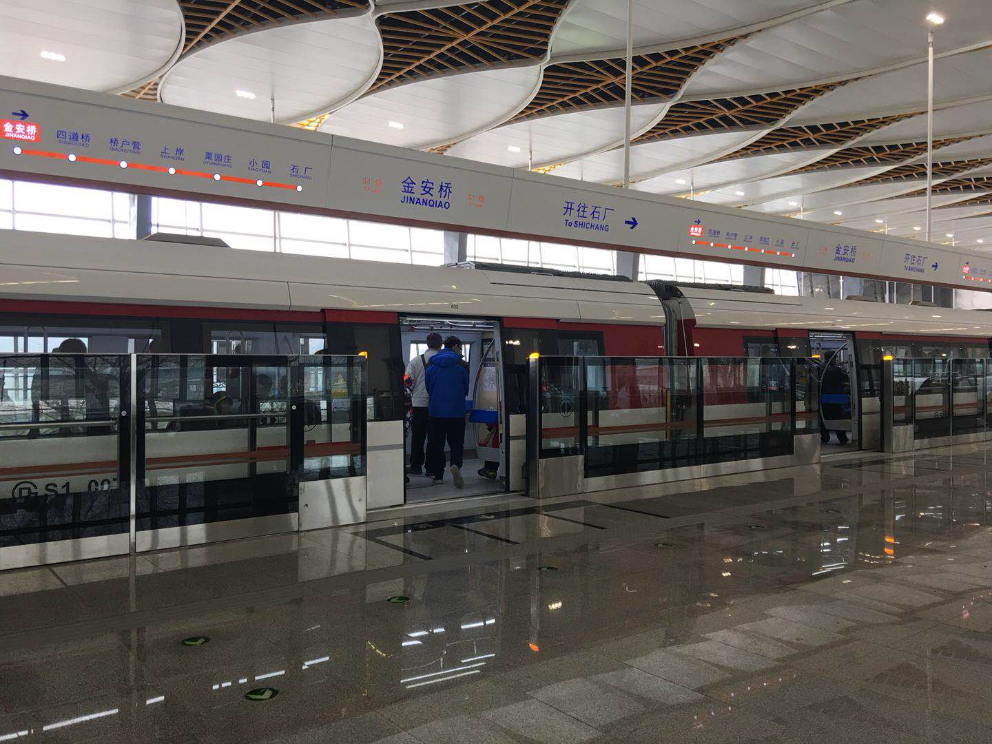 这条线路采用中低速磁浮交通模式,运行中磁浮列车会浮起大约8-10毫米。中低速磁浮列车还具有爬坡能力强、安全可靠、建设维护成本较低等诸多优点。S1线的开通,标志着中低速磁浮交通技术工程化研发成果在北京成功落地。