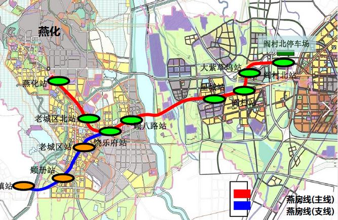 燕房线分为主线和支线,主线自燕化产业区南段起,沿燕房路、京周路、大件路接入阎村北站;支线起自周口店地区,沿兴房大街、京周路在饶乐府站接入主线。未来房山线与燕房线的换乘方式是同台换乘,不需要走任何换乘通道。