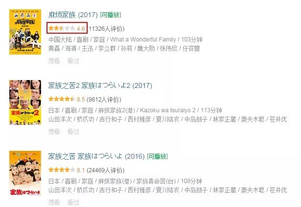 同样遭遇口碑“滑铁卢”的还有电影《麻烦家族》,虽然有李立群等“老戏骨”撑起演技,无奈在角色设置、对白乃至每一个笑点上,都跟山田洋次的原版几乎分毫不差,让人不禁吐槽“不是翻拍,是翻译”。