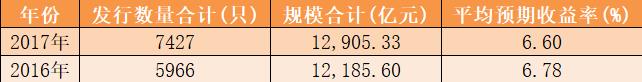 据Wind数据,截至12月31日,2017年66家信托公司共计成立7427款信托产品,其中6357款产品公布了成立规模,产品总成立规模为12905.33亿元,2016年全年的总成立规模为12185.60亿元,同比上升5.91%。