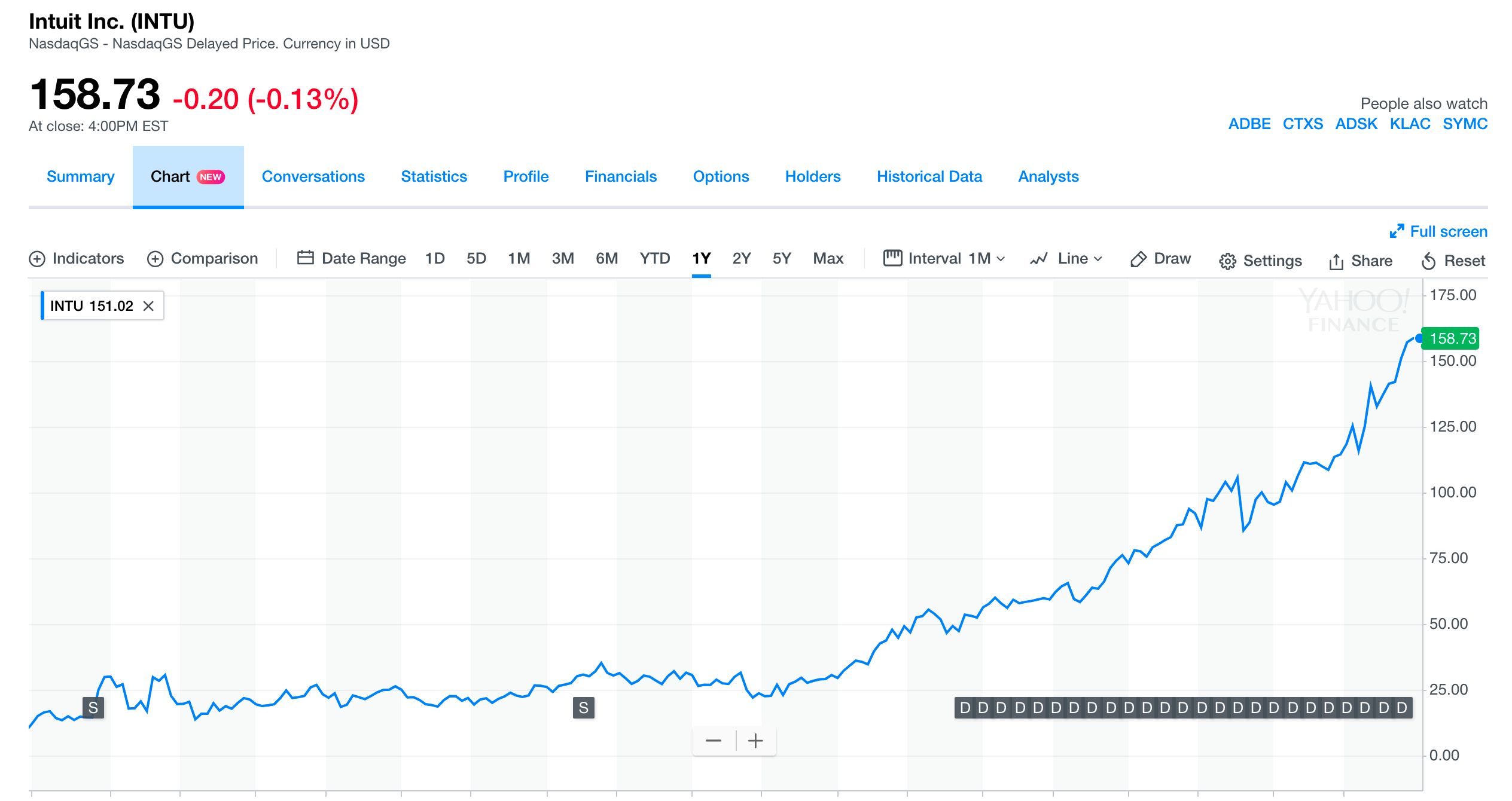 财捷(Intuit,NASDAQ:INTU)位于硅谷山景城(moutain view)的Intuit公司是一家以财务软件为主的高科技公司。Intuit公司成立于1983年。1988年,它的主要产品Quicken成了市场上同类产品中最受欢迎的。1993年上市,随后行情迅速上涨