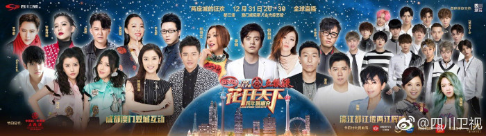2018年四川卫视“花开天下”跨年演唱会将在澳门金光综艺馆举办,并设成都都江堰分会场。
