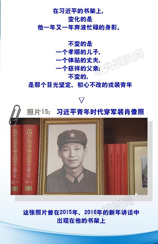 2017年1月,习近平在春节团拜会上讲了这样一番话:“不能忘了人间真情,不要在遥远的距离中隔断了真情,不要在日常的忙碌中遗忘了真情,不要在日夜的拼搏中忽略了真情”。以下4幅照片,从2014年开始,就一直出现在习主席的书架上,也是他的真情流露——