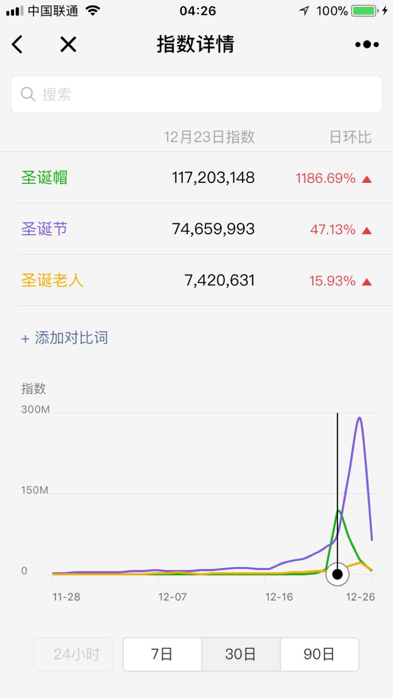 在微信朋友圈这片领地中,圣诞帽事件形成的是是一个你情我愿的社交传播游戏,由于参与门槛低、贴合节日热点、低成本,引起了群体强烈的反应,引爆能力特别强,毋容置疑,这是一种裂变式的病毒传播,成功了引发了用户的社交需求,在从众、猎奇的心理驱动下自发传播。根据微信指数可知,圣诞帽在引爆的24小时内占据全网热点榜首,朋友圈出现率将近2.9亿次,根据8亿微信用户数据计算,在这个时段内,朋友圈每8个人中有3个人求圣诞帽。