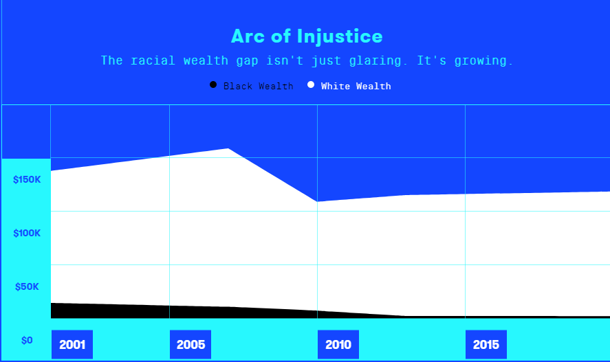 每一分加薪、每多打一份工所增加的收入,以及每次跳槽增加的薪资,似乎都会被新的账单和债务吞噬,这就是他们的现实。难怪有数据显示:毕业四年后,黑人的平均学贷偿还额只有白人的一半,而拖欠的可能性却是白人的三倍。抛开其他因素不谈,二者之间财富再生能力的不均等是不容忽视的。有数据显示,中产阶级白人家庭每多赚一美元,就能增加5.19美元的财富,而黑人家庭却只能增加区区69美分。