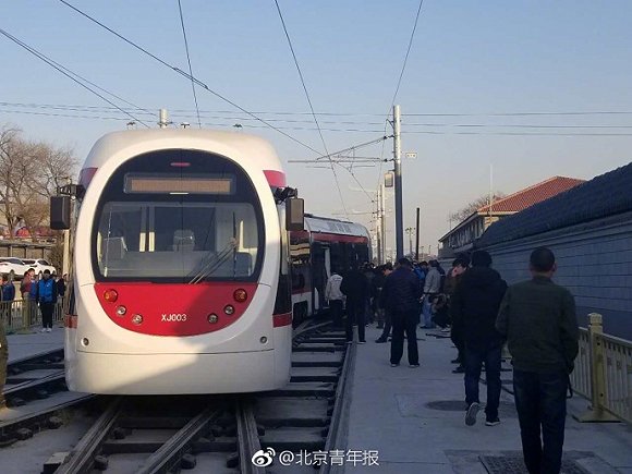 北京公交集团稍后发布了通报:2018年1月1号下午2:40左右,北京现代有轨电车西郊线XJ003号故障车,在从香山站空车回库过程中,刚出站20米,在香山站前交渡区出现故障造成车辆无法移动。