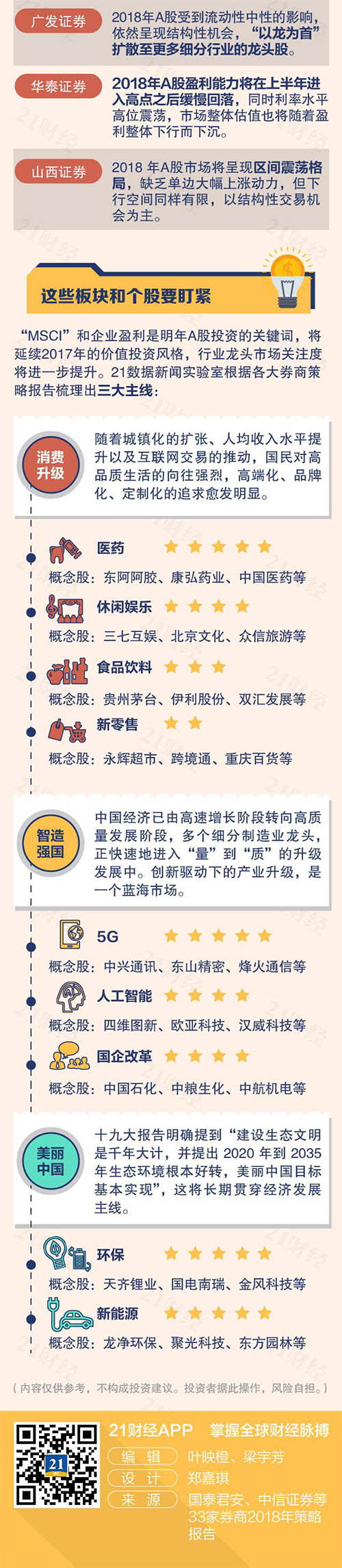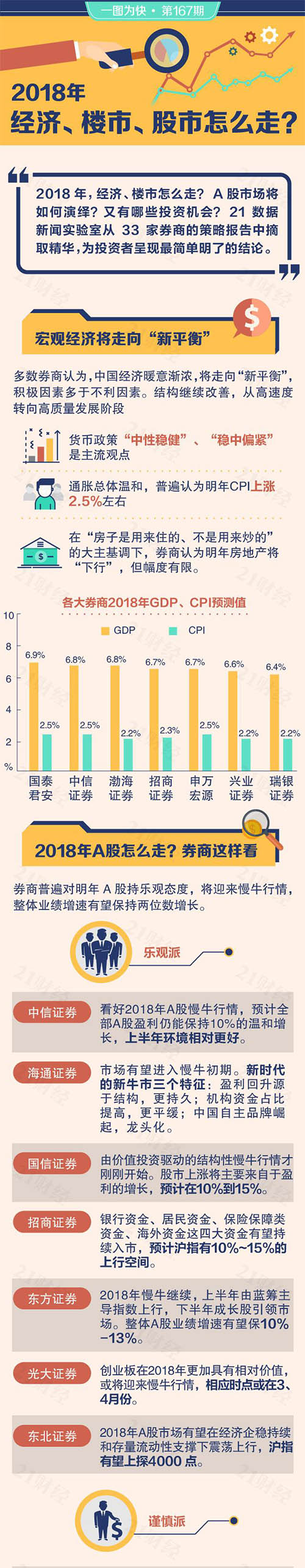 2018年,经济、楼市怎么走?A股市场将如何演绎?又有哪些投资机会?21数据新闻实验室从33家券商的策略报告中摘取精华,为投资者呈现最简单明了的结论。