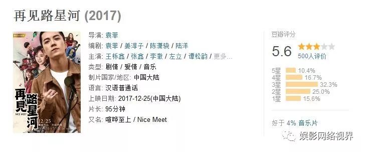 截至发稿日,《再见路星河》累计点击量突破900万,豆瓣评分5.6分。