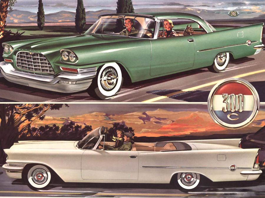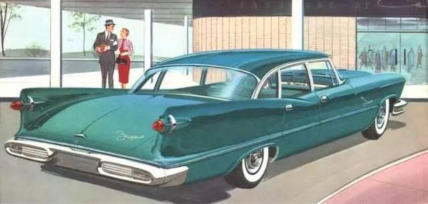 真正将“尾鳍车”发扬光大的,是克莱斯勒的设计师维吉尔?埃克斯纳。他非常迷恋汽车的尾鳍设计,研究各式各样的尾鳍造型,甚至跑去密歇根大学做了风洞实验,为“尾鳍能够提升空气动力学”的想法寻求数据支持。1955款克莱斯勒300是埃克斯纳对“尾鳍车”设计的牛刀小试,他为这种设计风格起了个新名字:前沿式设计(Forward Look)。