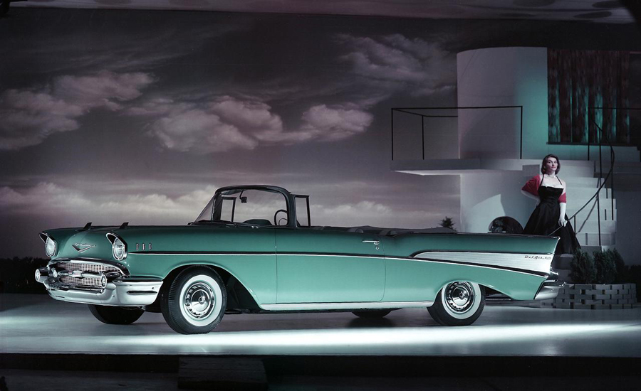 1957年开始,“尾鳍车”设计风潮在美国真正进入了鼎盛时期。除了像厄尔、埃克斯纳这样真正喜欢尾鳍造型的设计师以外,背后还有另一层略显尴尬的原因:历经12年的高速增长后,美国开始进入战后第一次经济衰退期,汽车销量开始下滑。为了吸引民众掏钱买车,汽车厂商纷纷推出更加吸引眼球的造型,以维持销量。此时,克莱斯勒的“前沿式设计”风格便顺理成章地站到了“风口浪尖”,一下子成为各大汽车厂商的“救命稻草”。彼时的著名“尾鳍车”车型有克莱斯勒300C、克莱斯勒帝国、福特雷鸟和雪佛兰Bel Air等车型。