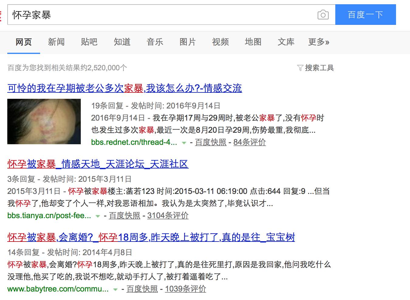 百度搜索“怀孕家暴”,相关内容两百多万条