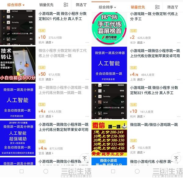 就在人们吐槽“玩个游戏要不要这么拼啊”的时候,还有网友发现,就这短短两三天的工夫,【跳一跳】已经发展出了“纯手工代练上分”的业务了。目前我们看到,目前人工智能代练的价钱比较便宜,一半不要5月即可,而纯手工代练则定价在2到50元不等。目前按某平台上销量排序来看,“2元上分”这项代玩服务目前已有625人收货,月销量更是达到了1149币。