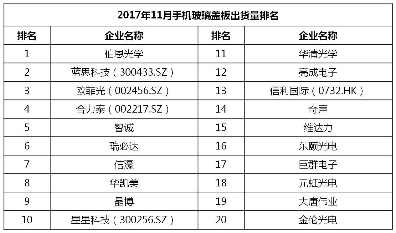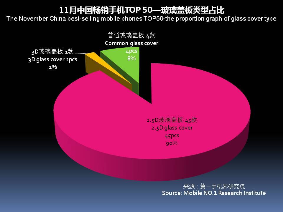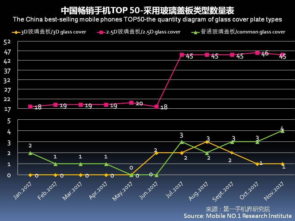 11月中国畅销手机TOP 50中,采用3D玻璃盖板的手机只有三星Galaxy S8进入TOP 50。