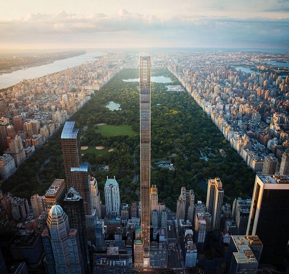 就建筑领域,高不是一切,建筑美感可能还包括更细、更大,或者更奇特。也是在今年,在亿万富翁之路(Billionaire’s Row)的57街,111 West 57th Street大楼要竣工,地基只有18.5米,高度却达到了435米,宽高比是1:23.5,这是当前比较极端的“细楼”例子。我们还介绍过别针大楼,也会在寸土寸金的57街完工,建筑设计所oiio不仅追求高、细,还让一座楼在高空“柔软”地歪了个弯再落回地面。