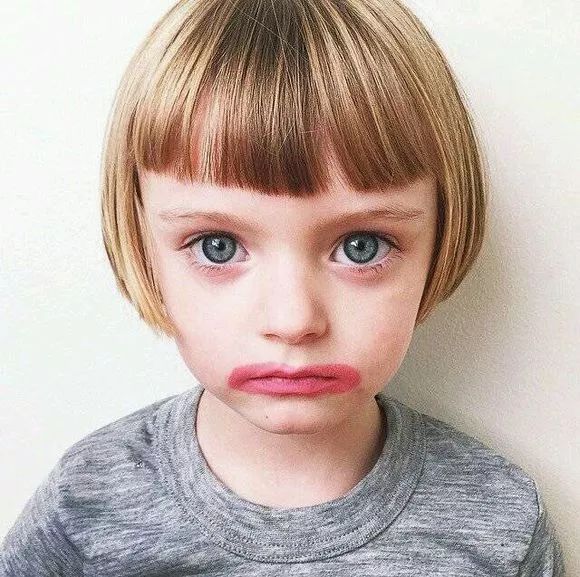 V 姐甚至还经常看到网上的小伙伴们喜欢用Olive这张涂满口红的搞怪照片,没错,这张照片的主人就是Olive Elise Abercrombie本人无疑啦~