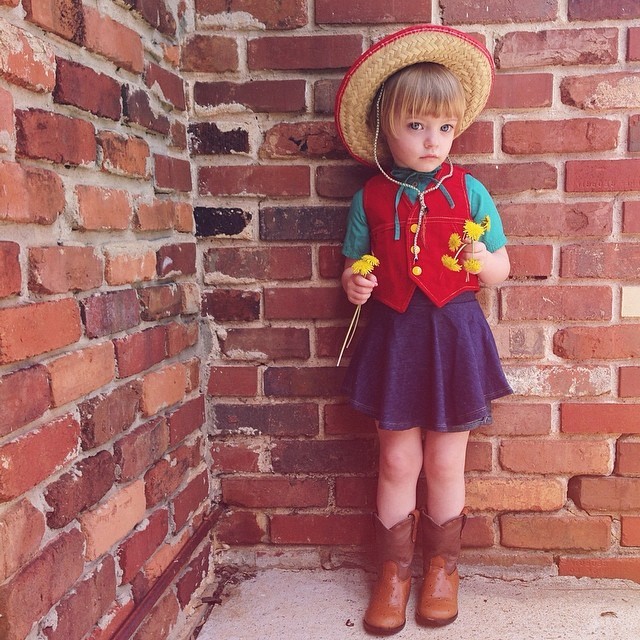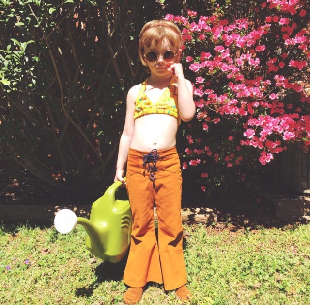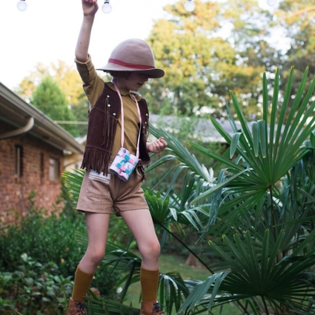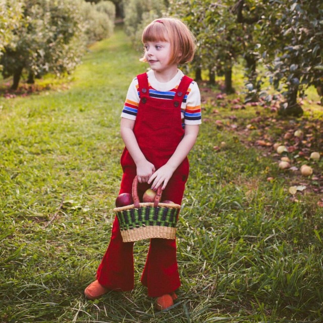 在复古的时尚之路上,Olive的造型中不仅大量运用灯芯绒、喇叭裤、牛仔等元素,也有着撞色、牛仔boy的搞怪风格,真真像极了一位可爱的假小子。