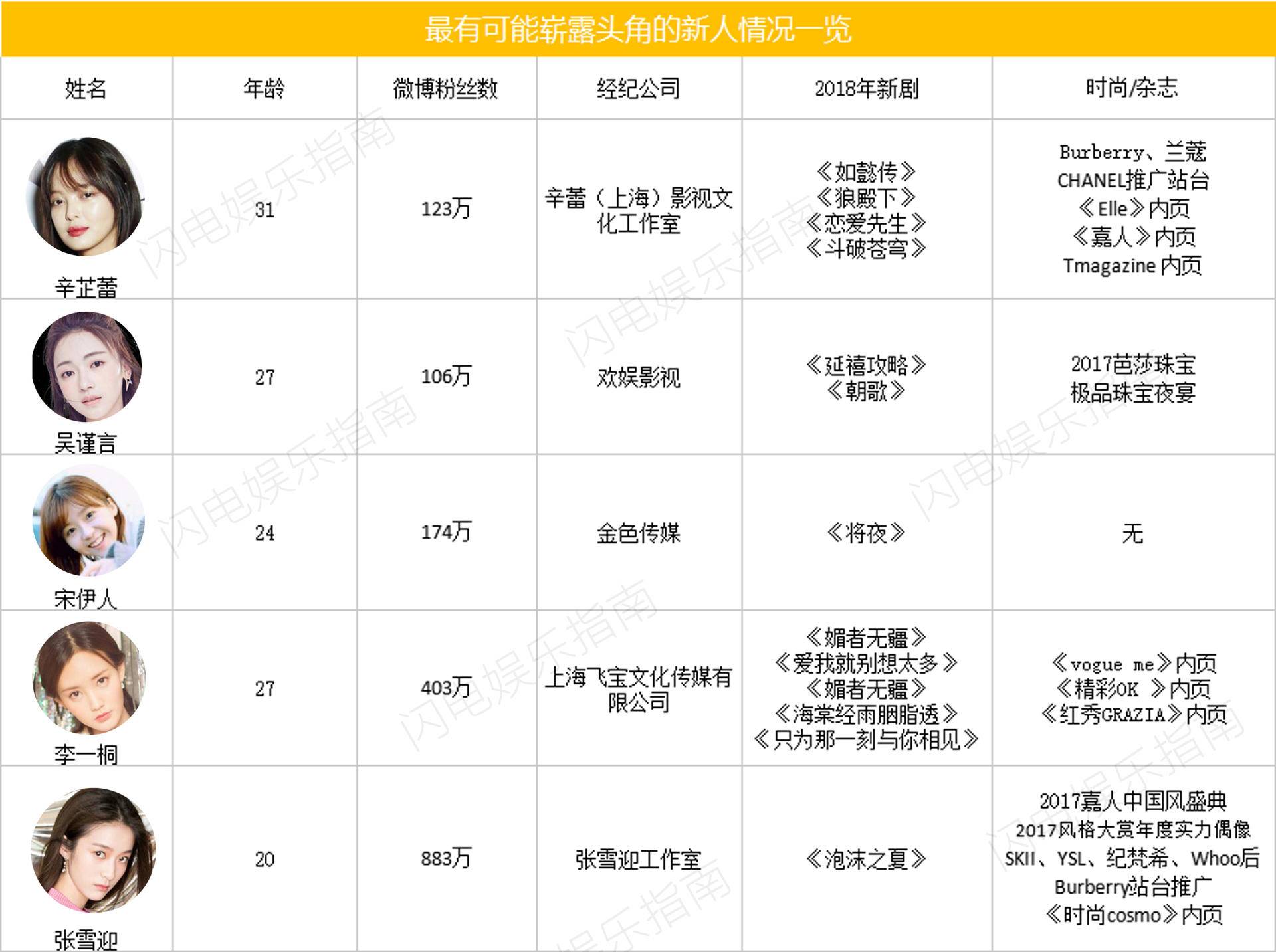 这也意味着,2018年的热搜榜上,还会有上述那些老面孔。同时,一大波小花也在跃跃欲试,伺机强势卡位,更有一批新人希望能在2018出人头地。