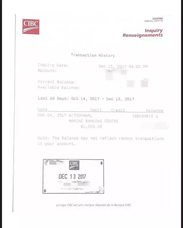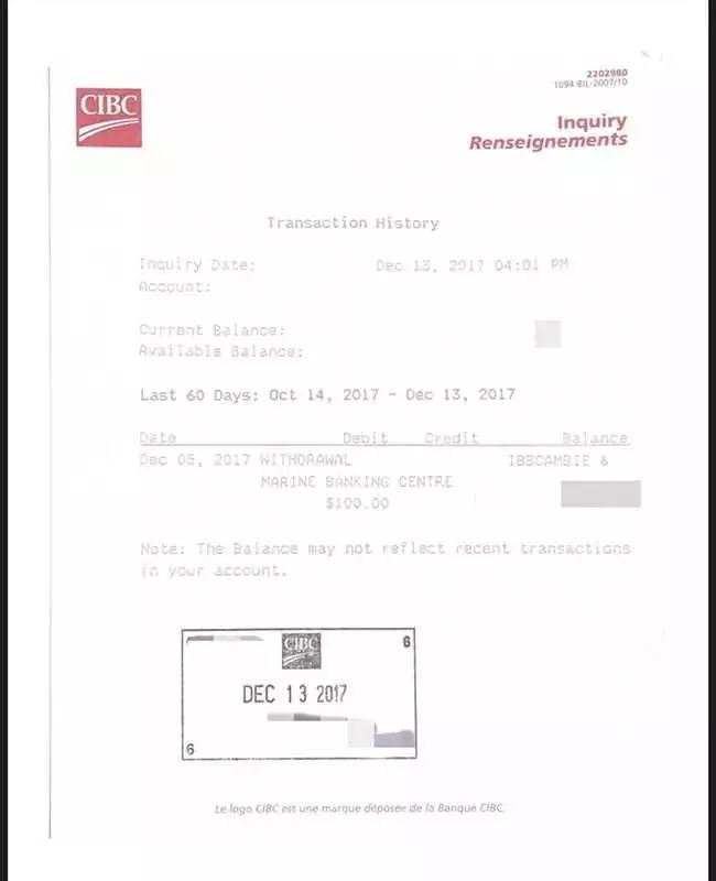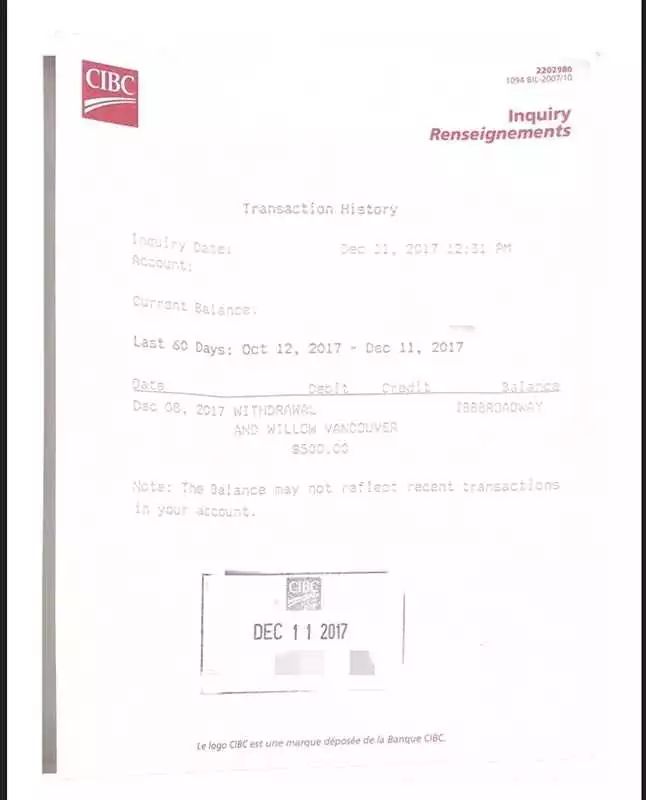 直到12月5日,洪女士突然收到了位于温哥华市South West Marine Drive 496号的CIBC银行职员电话,询问她当天有没有去银行取钱。至此洪女士才得知,骗子在没有提供任何身份证件的情况下,仅凭借名字、生日和手机电话信息,在当天从她的账户中提走了$100,此前还在12月4日同一家分行取走了$1000。