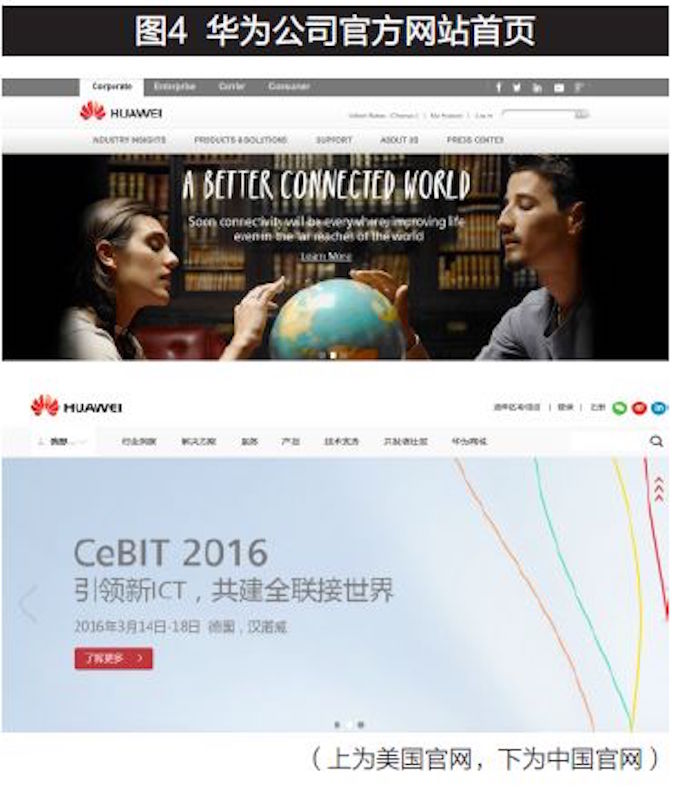 遗憾的是,即便像华为这样的杰出品牌已进入全球百强品牌排行榜,打开华为的官方网站,我们会被醒目的“更美好地联接全世界(A better connected world)”的大幅标语所吸引(见图4),但却找不到明确的、差异化的价值观诉求。