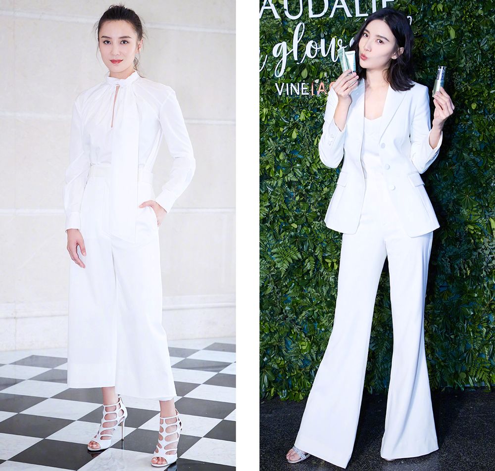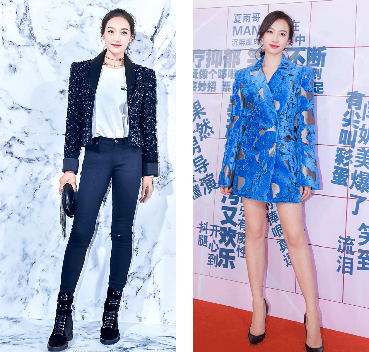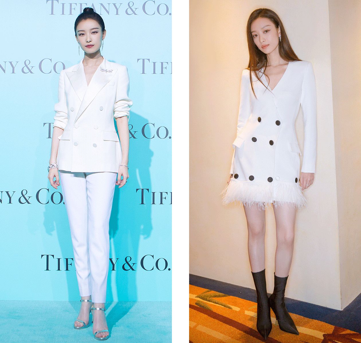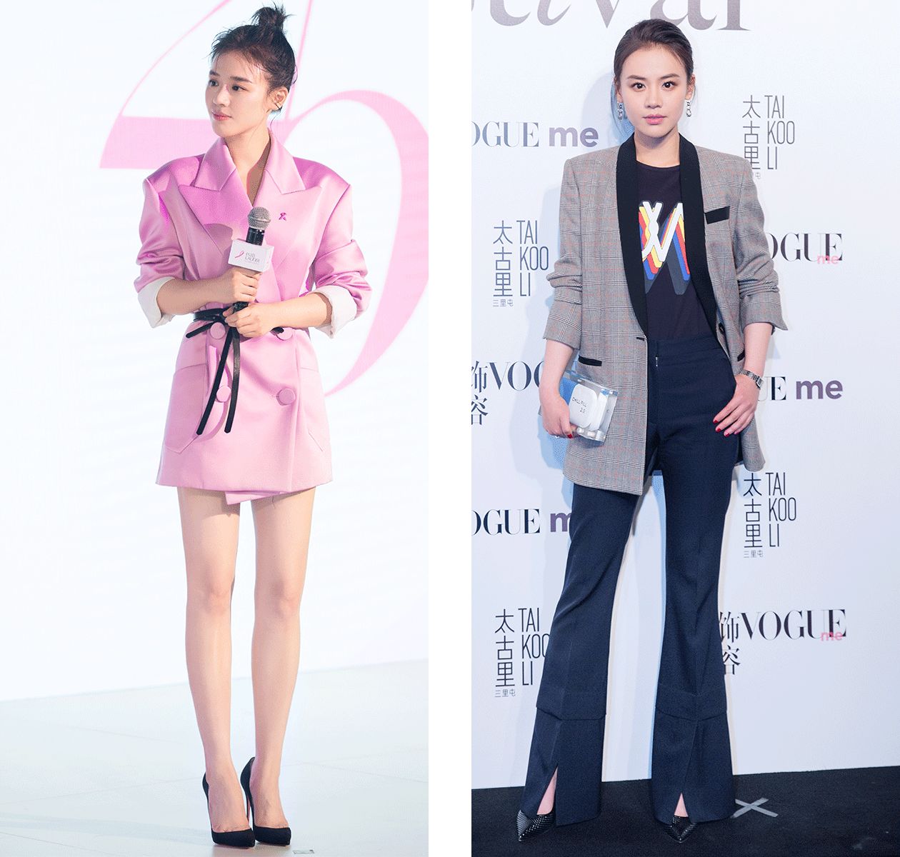 还有宽肩西服、丝绒西服这些很厉害,别的女明星不一定敢穿的单品,她都能穿得都得体又时髦。
