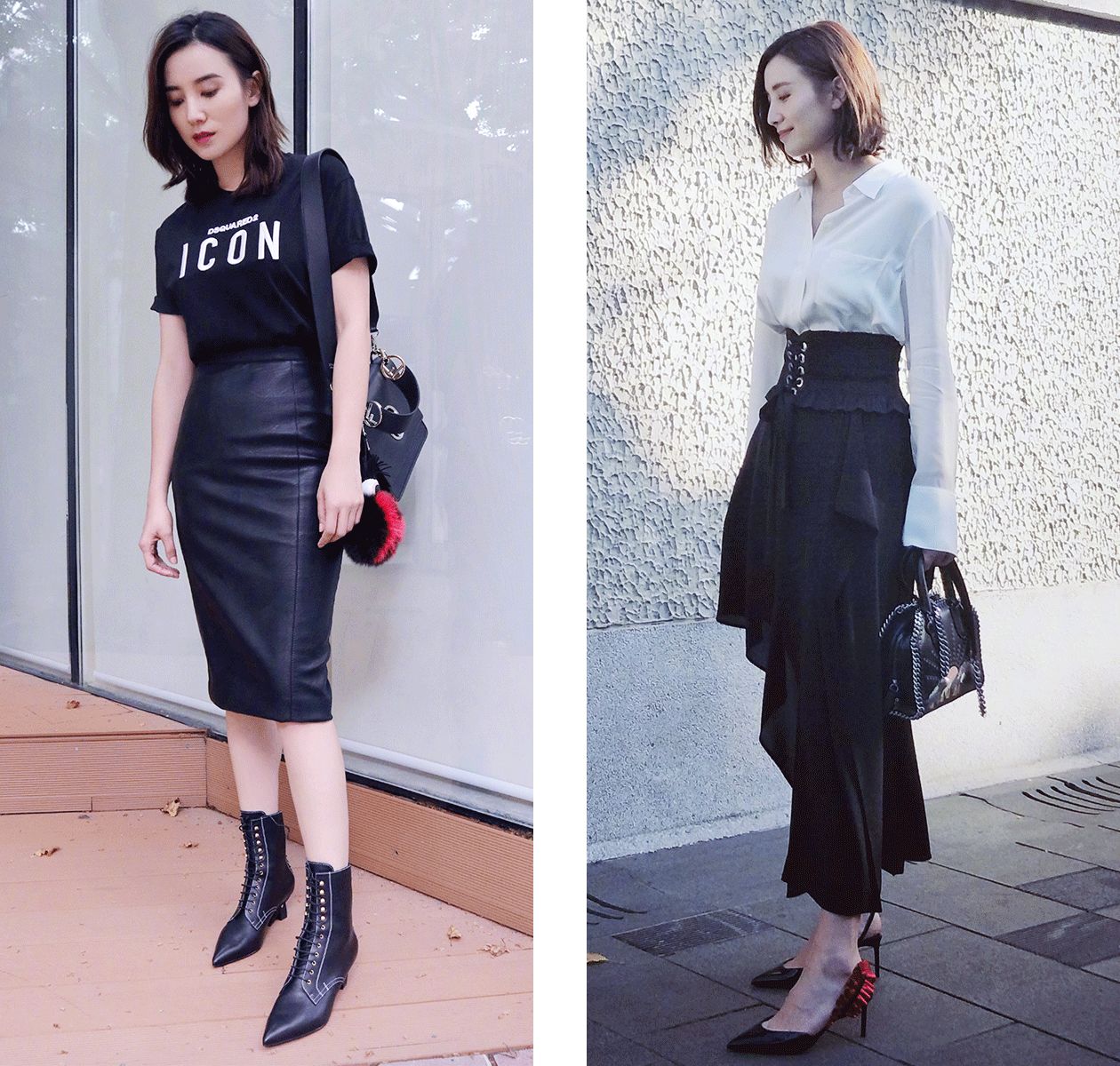 尖头猫跟靴和不规则半身裙,都是她开过光的。