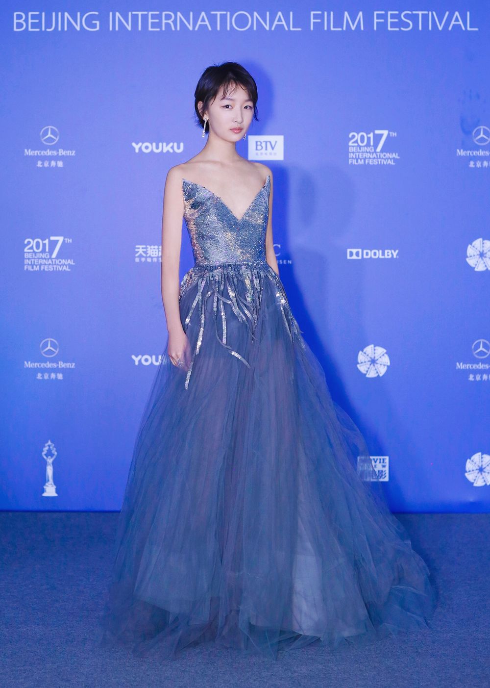 红毯造型,宋茜尝试过很多风格,什么女神长裙啦,少女的荷叶边啦,不过效果都一般。