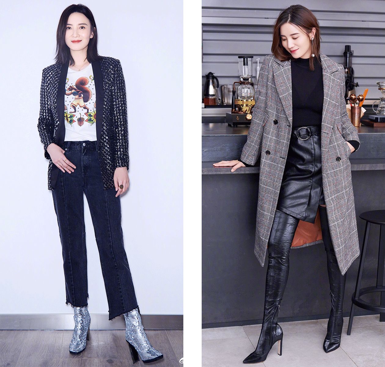 一些不太好穿的顶尖单品,也都能被她不费力就穿时髦,比如很多姑娘不敢穿的金属靴和大腿靴,她都做好了示范。