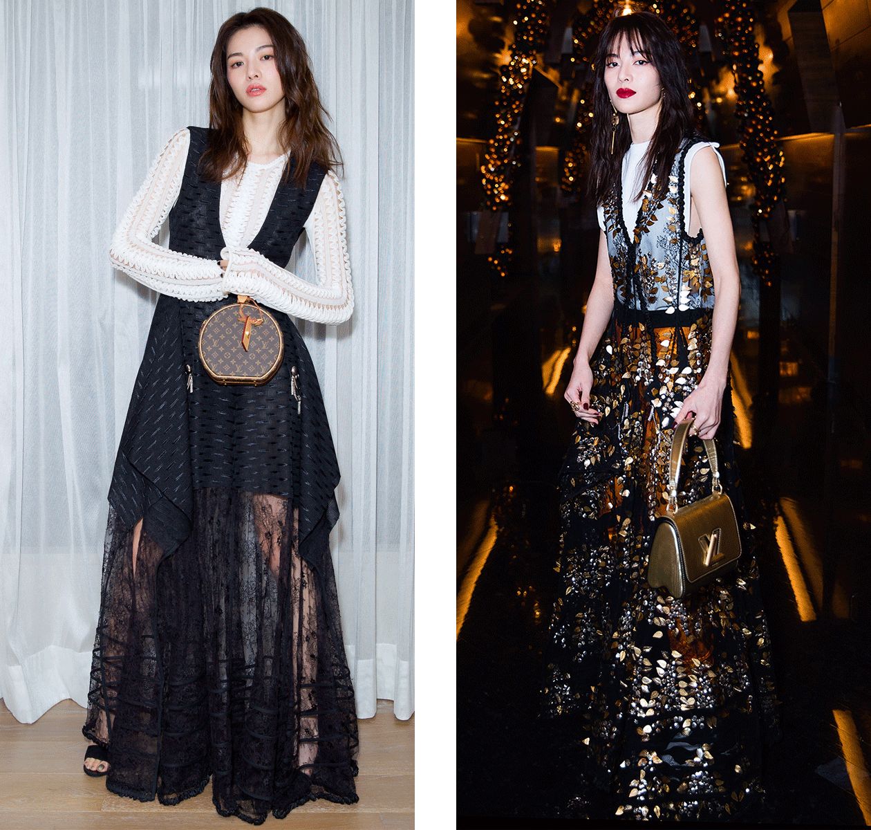 像Louis Vuitton这种黑纱裙,穿不好就很灾难,但被她穿出了堪比超模的酷和性感。