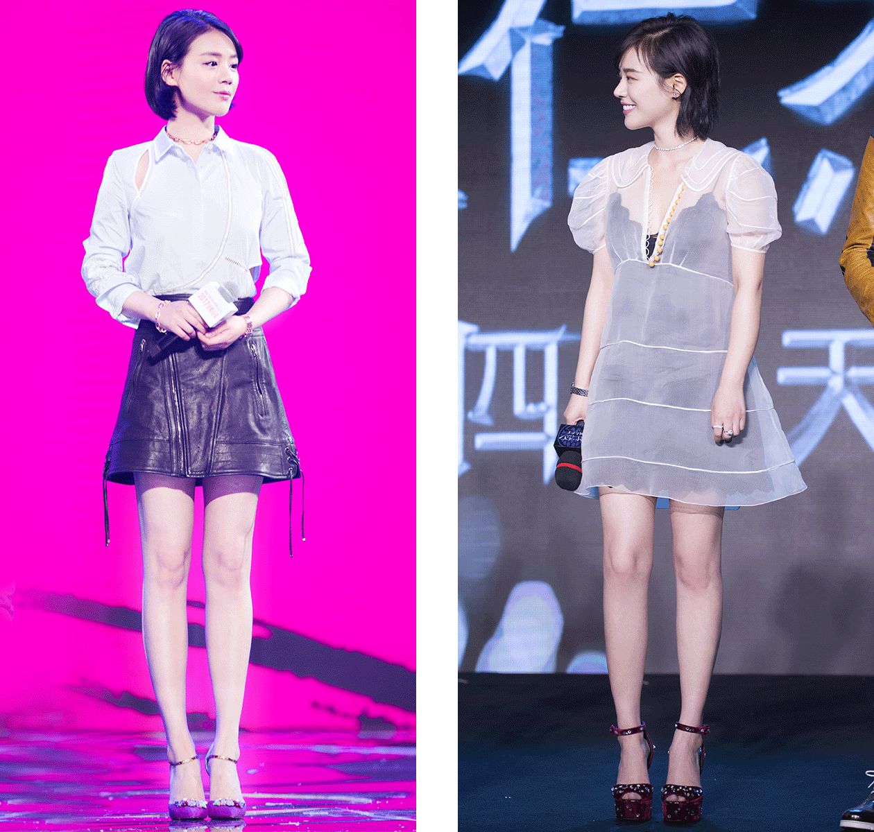 而且她现在越来越懂得扬长避短,因为本身骨架比较大,肩又宽,更适合露腿,像一些露背装她都巧妙避免了。