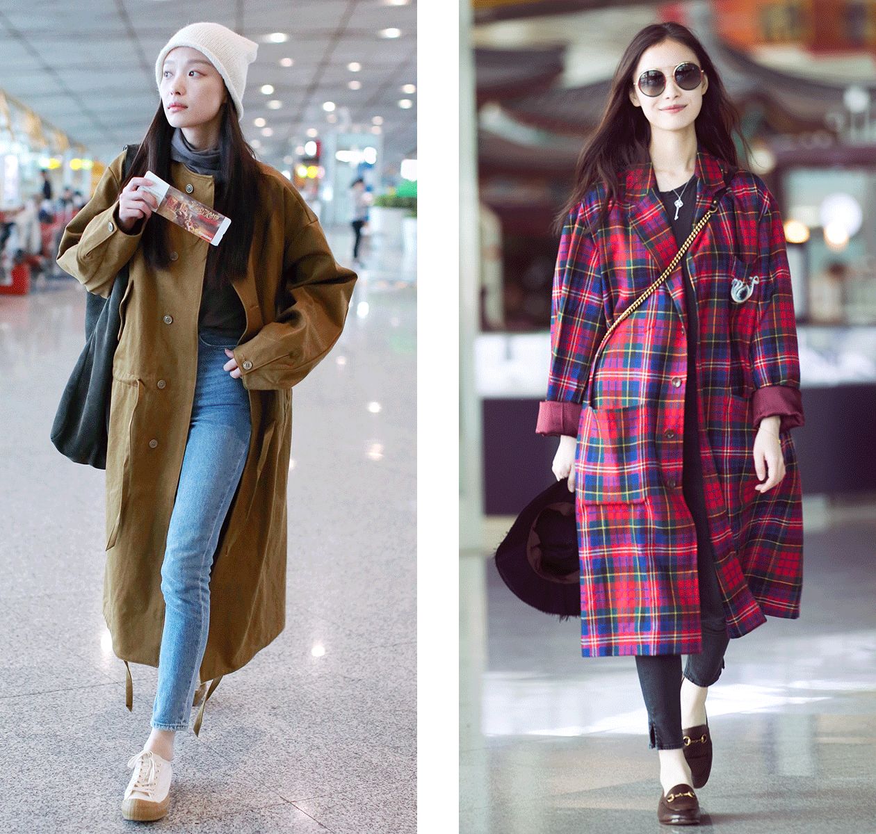 江疏影私服造型也很御姐,喜欢穿拉风长外套,突显气质。