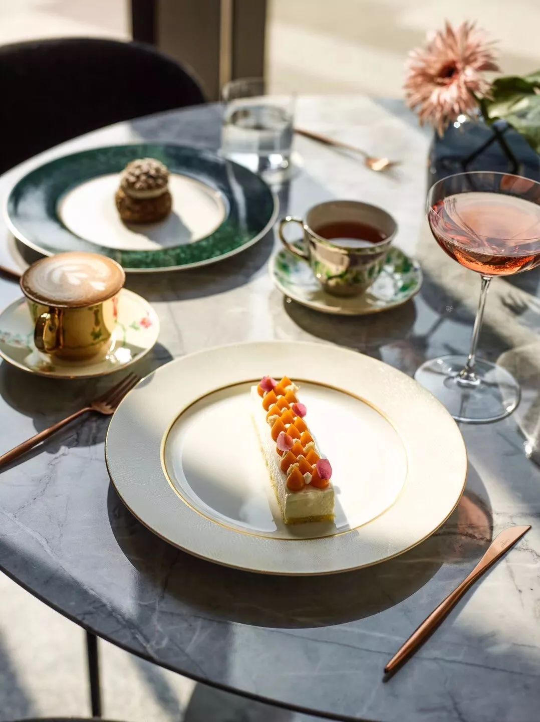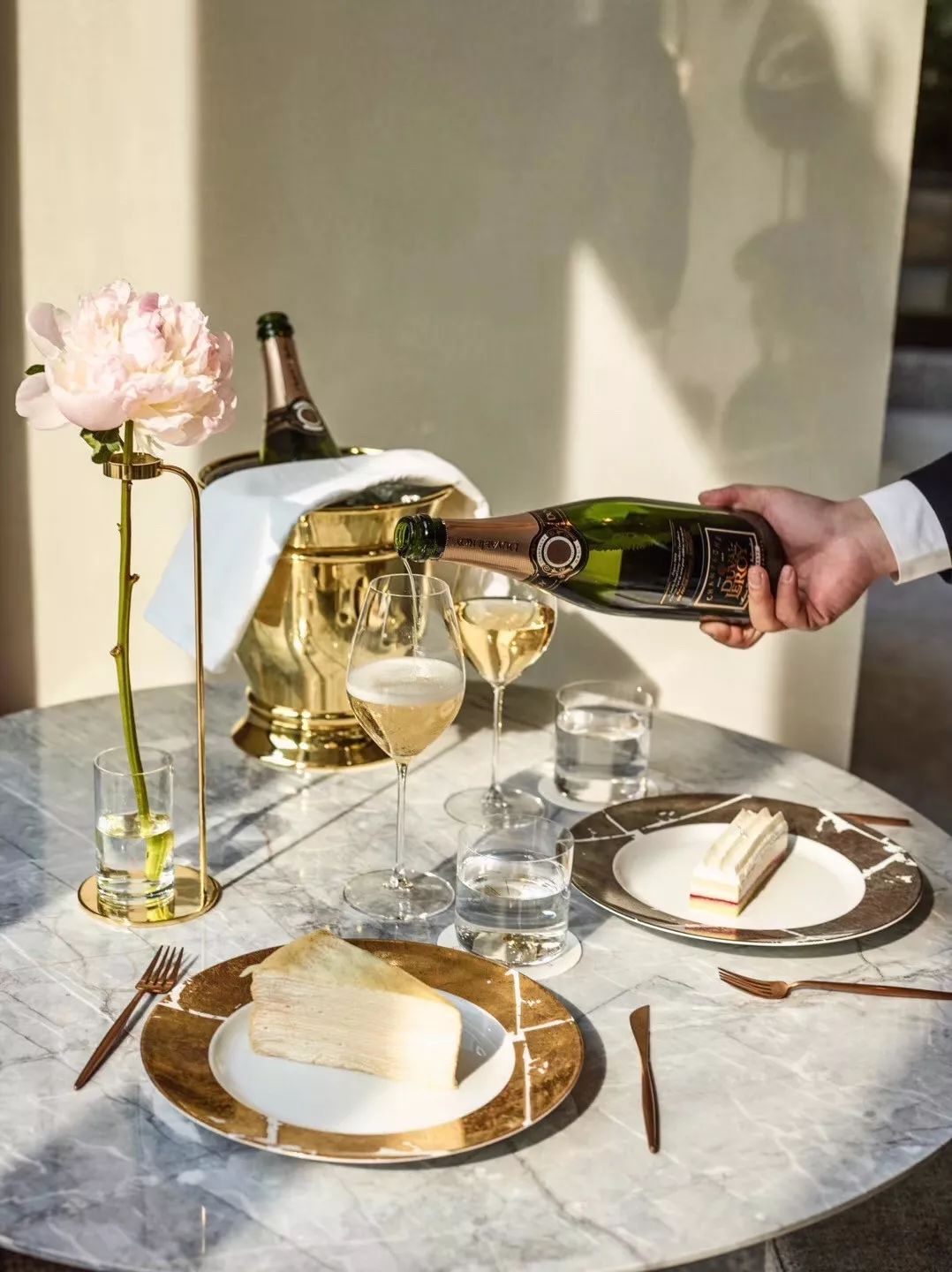 在这几天集中尝试之后,我会推荐:混酿的干型香槟去搭配香草千层以及白巧克力伯爵茶蛋糕;桃红香槟则非常适合芒果香蜜蛋糕和黑芝麻泡芙;日本柚子和伊朗开心果蛋糕酸甜清爽,和绝大多数香槟都很搭。当然,最搭配还是享受美食美酒的心情!
