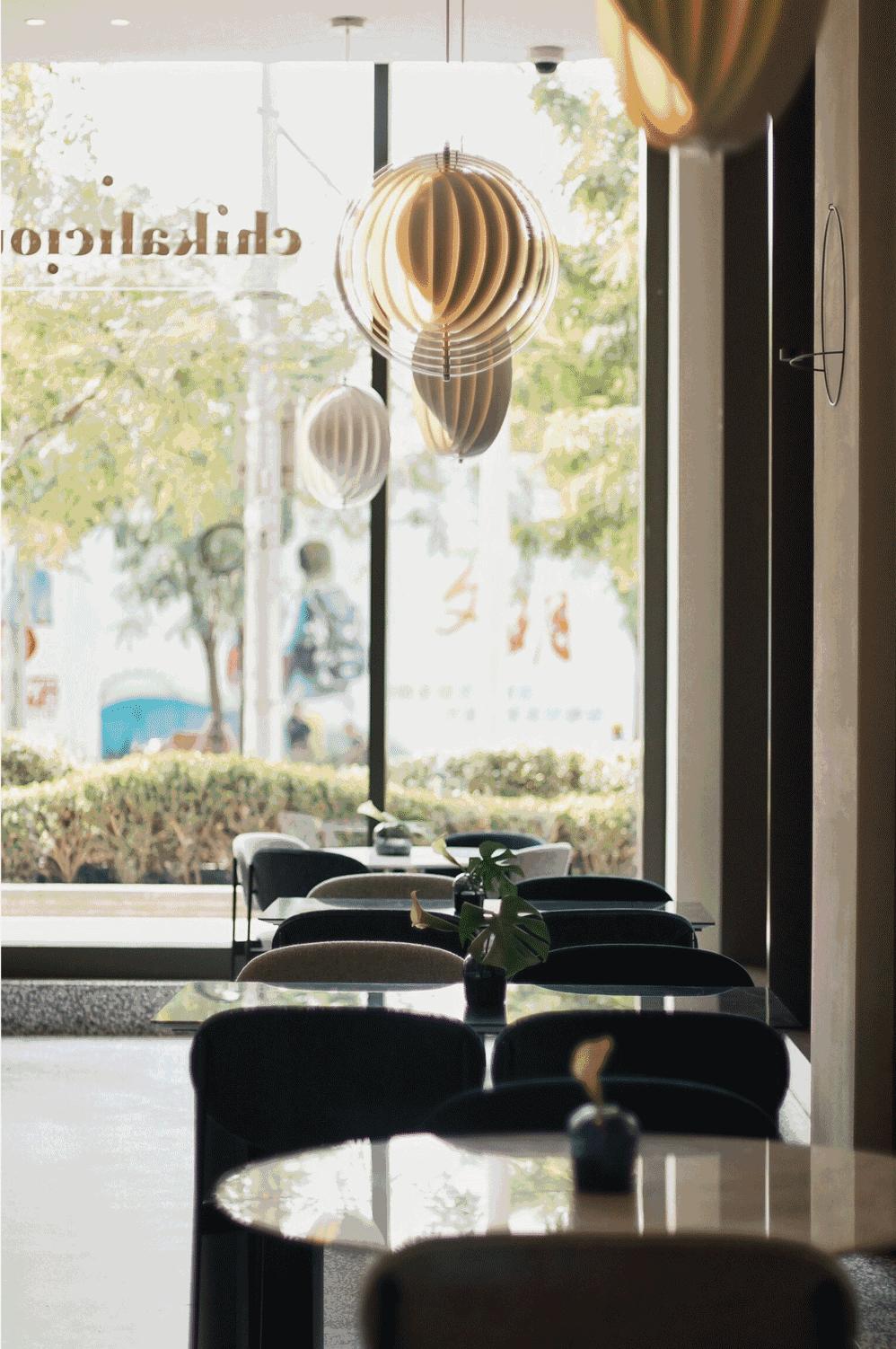 就餐区的桌与桌之间空间比较大,意在给客人留足更富余的甜点和社交时光。桌子上搭配了MENU的花器,也有店员每日精心的插花,趣味十足地混搭了北欧的高冷和日式的优雅。