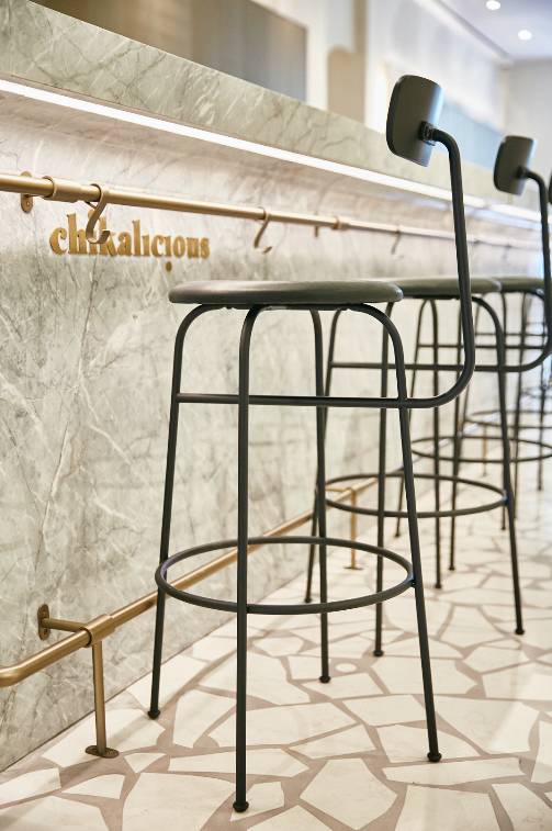 这部分给整个Chikalicious新店定了优雅的主基调,暗金色的寄存处不仅形式感十足,也让客人可以真正寄存重要物品,轻松享受自在时光。