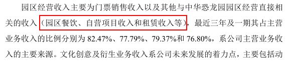 在常州恐龙园的主营业务收入中,有近80%的收入都来自于园区运营。而园区运营除了门票外还包括园区餐饮、自营项目收入和租赁收入,这些都是主营业务收入的主要来源。