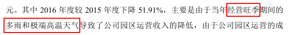 常州恐龙园在风险提示中解释了这一原因:净利润的下降主要是由于当年经营旺季期间的多雨和极端高温天气导致了公司园区运营收入的降低,请投资者注意偶然因素对公司经营带来的风险。