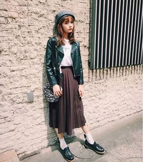 想遮肉的可以选择膝盖以下的裙长,高腰款式更显腰细腿长!短外套可以“随心所欲”,皮夹克、牛仔外套、针织衫……